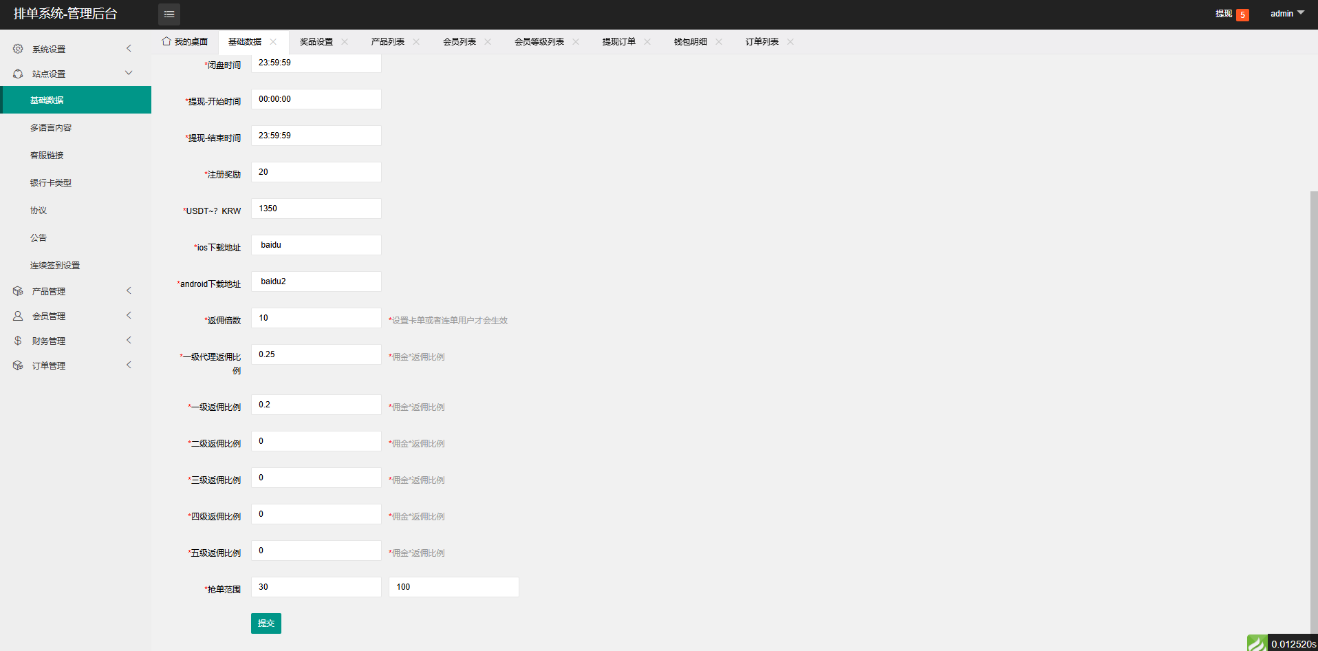 新增设置用户统一抢单百分比范围