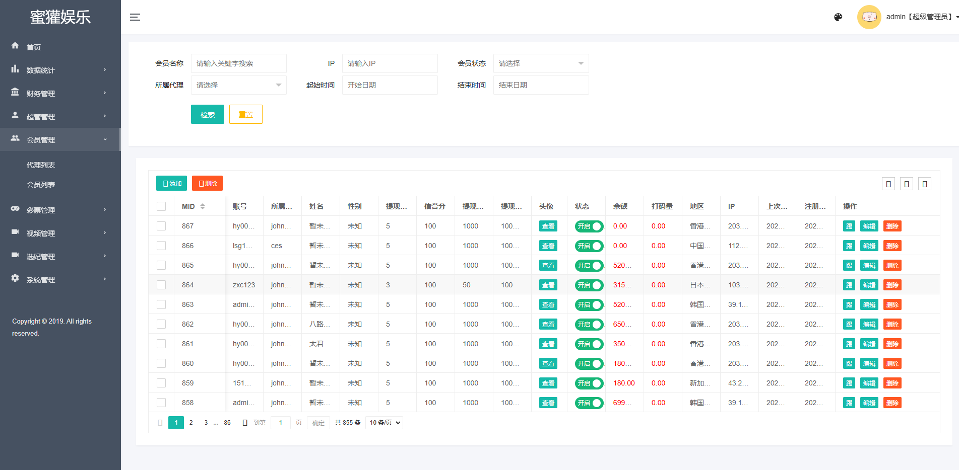 admin 直播影视 社交通讯 综合系统 海外同城约炮空降任务/日本空降系统/前端vue 前端VUE开发,后端php系统全开源可二开 系统默认日语主做日本,可二开多语言 任务彩种都是系统彩,后台可预设控制