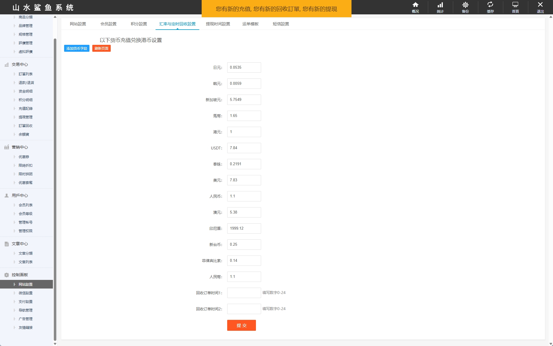 支持充值汇率选择,前端邀请码访问