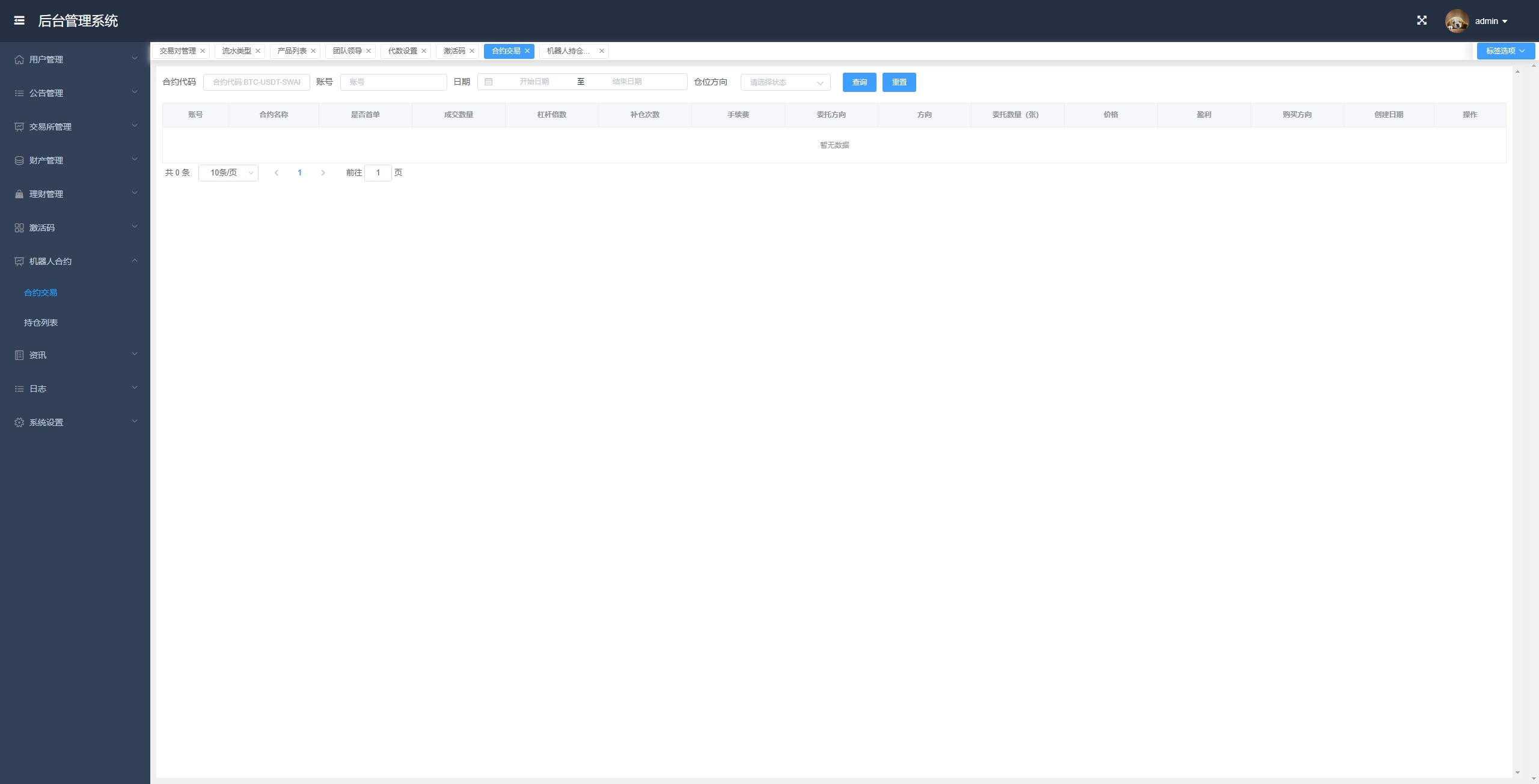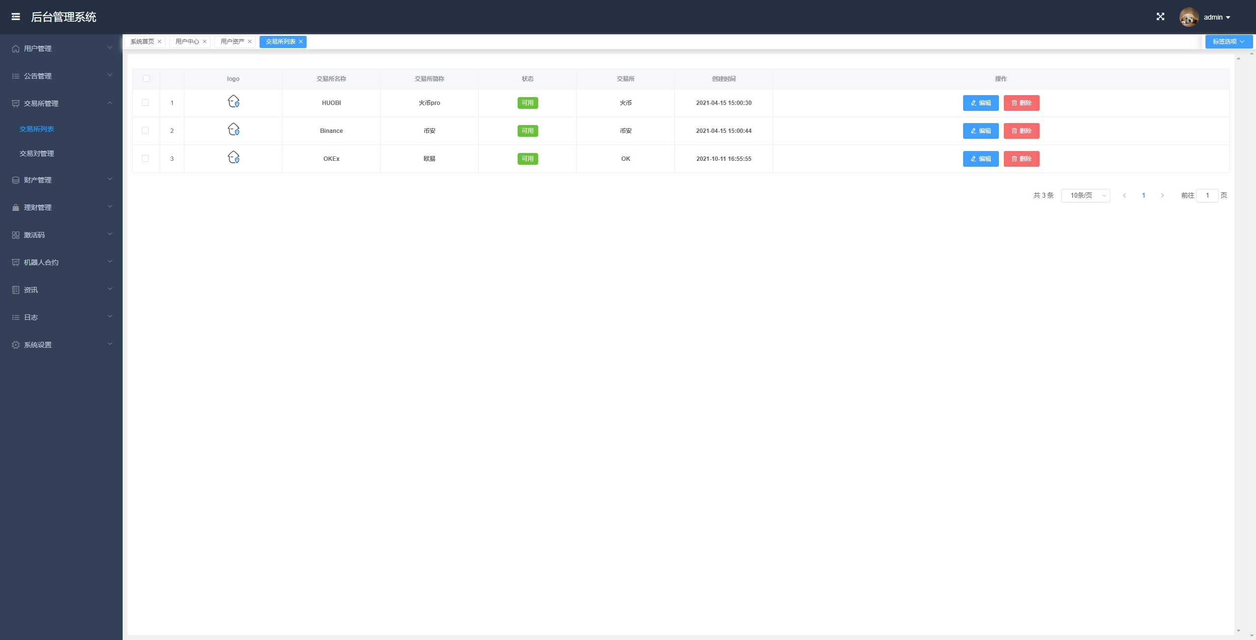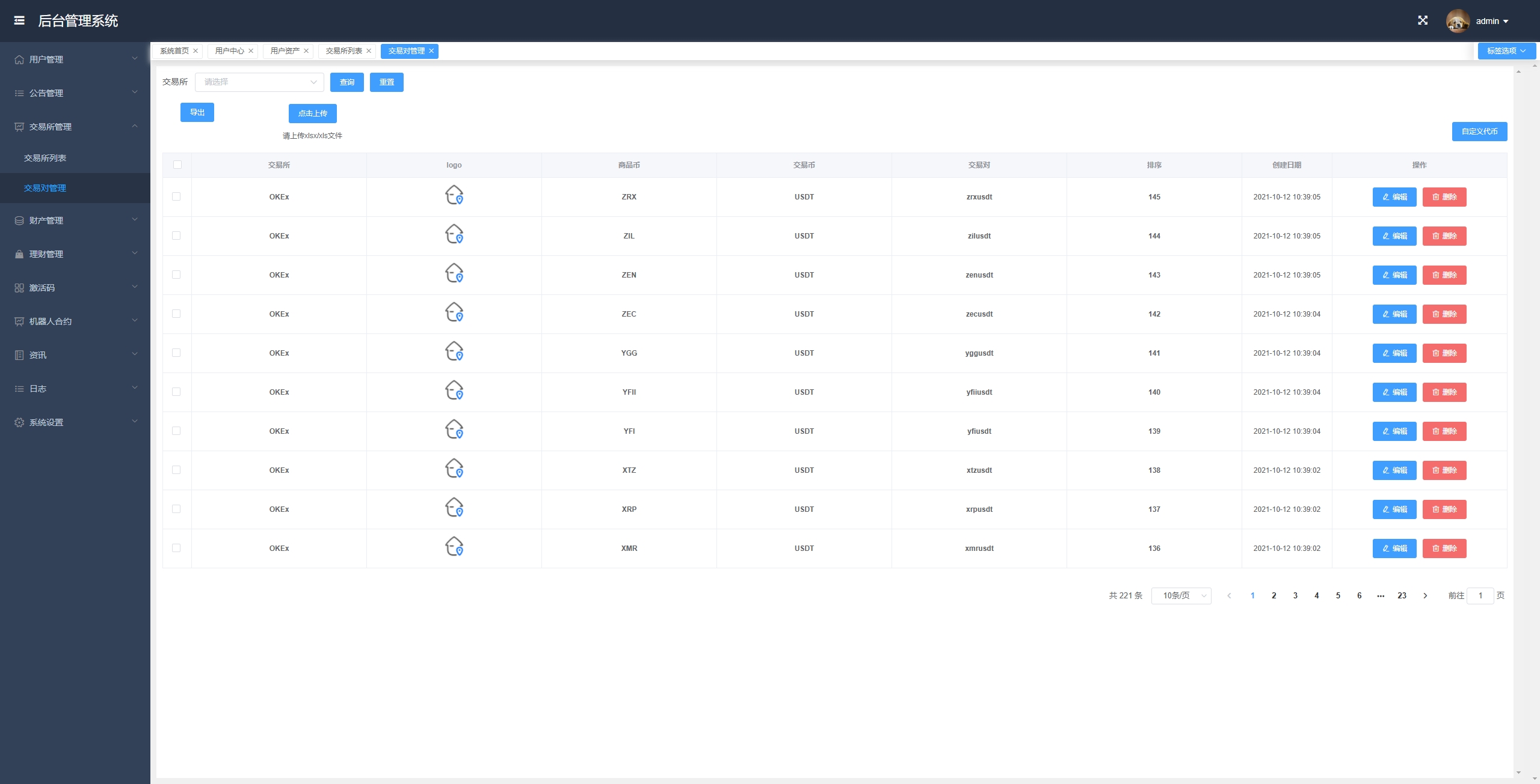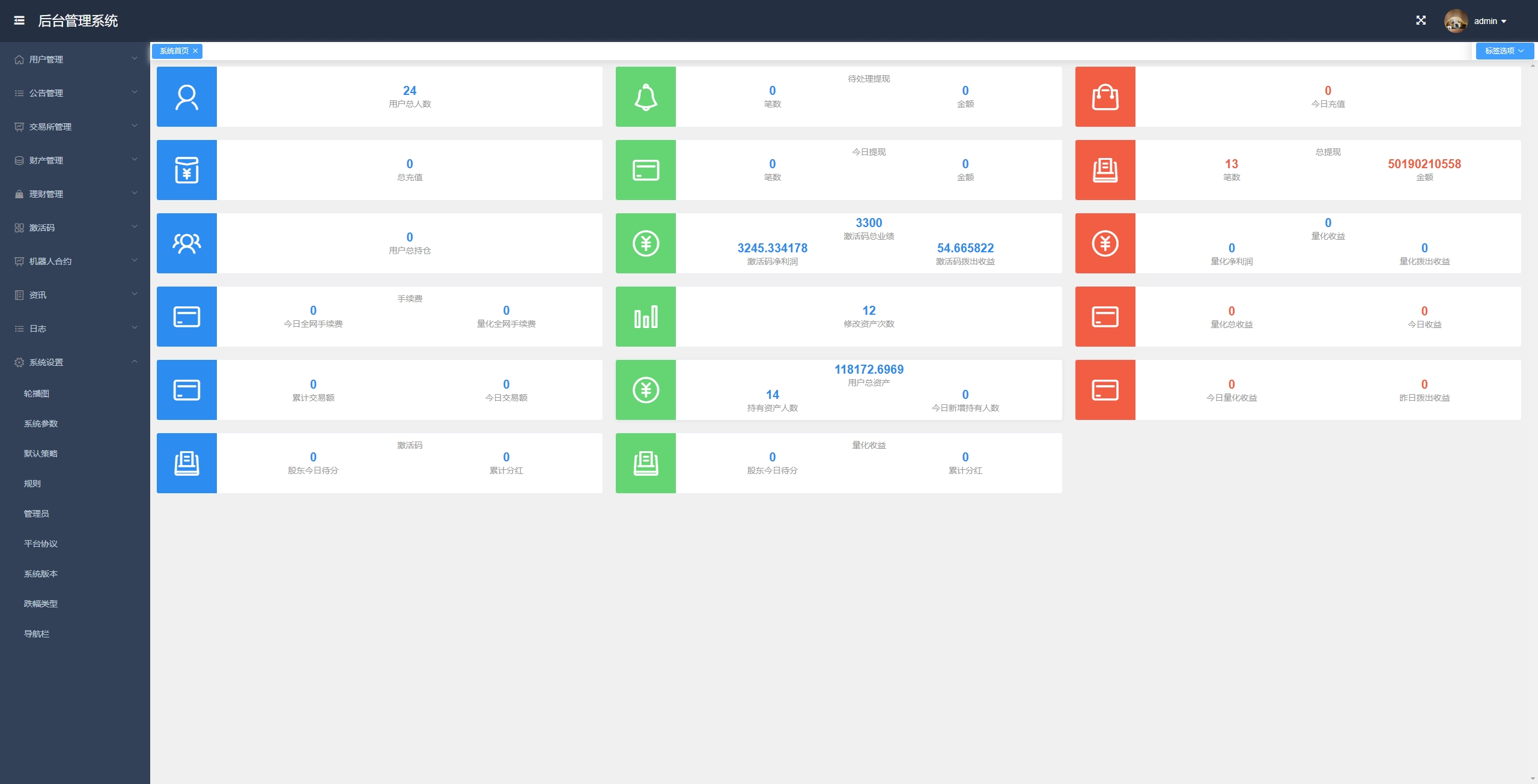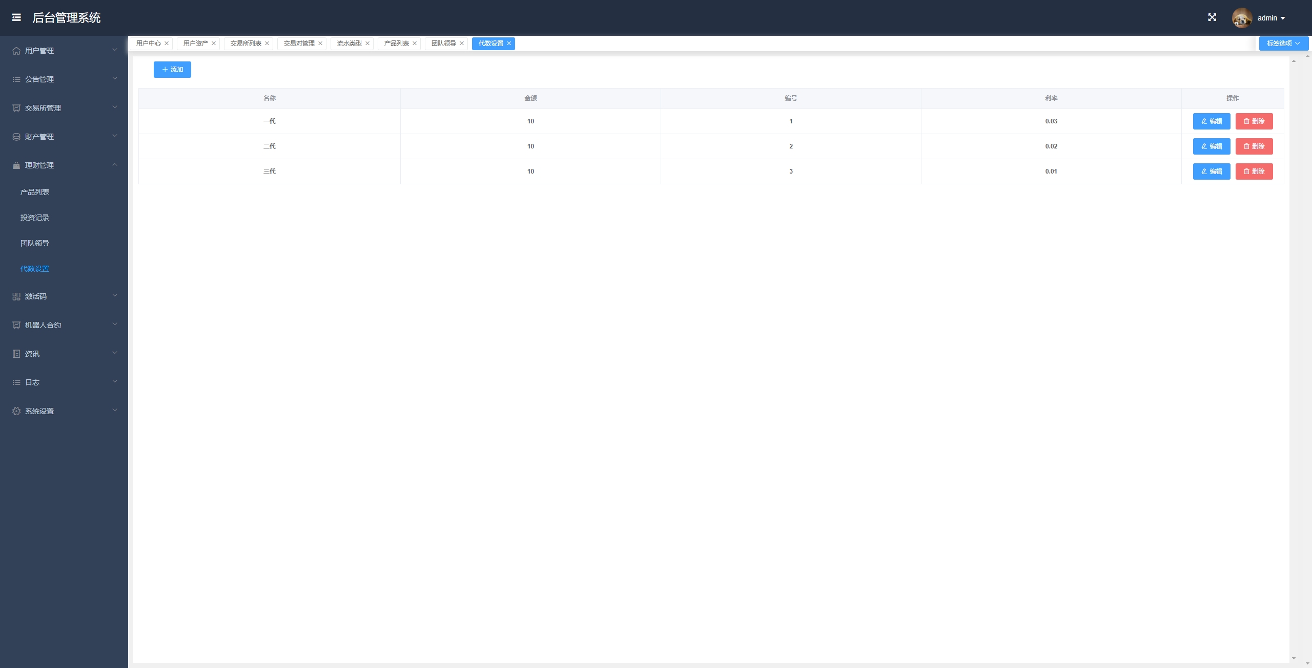admin 微盘理财 综合系统 海外量化交易系统/多语言策略马丁跟单/自动交易机器人 系统JAVA语言开发,支持百万高并发。前端UNIAPPA开发 策略循环:单次交易结束后,重新按照卖出价作为当前价格重新买入。 盈利回调:交易达到止盈比例后,重新设定下跌回调价格。 智能交易算法:智能追踪建仓,延迟补单,精细化仓位管理,灵活捕捉点位。 智能追踪止盈:设置触发条件,盈利条件比例达到之后,机器人自动触发追踪止盈。 带有跟单社区