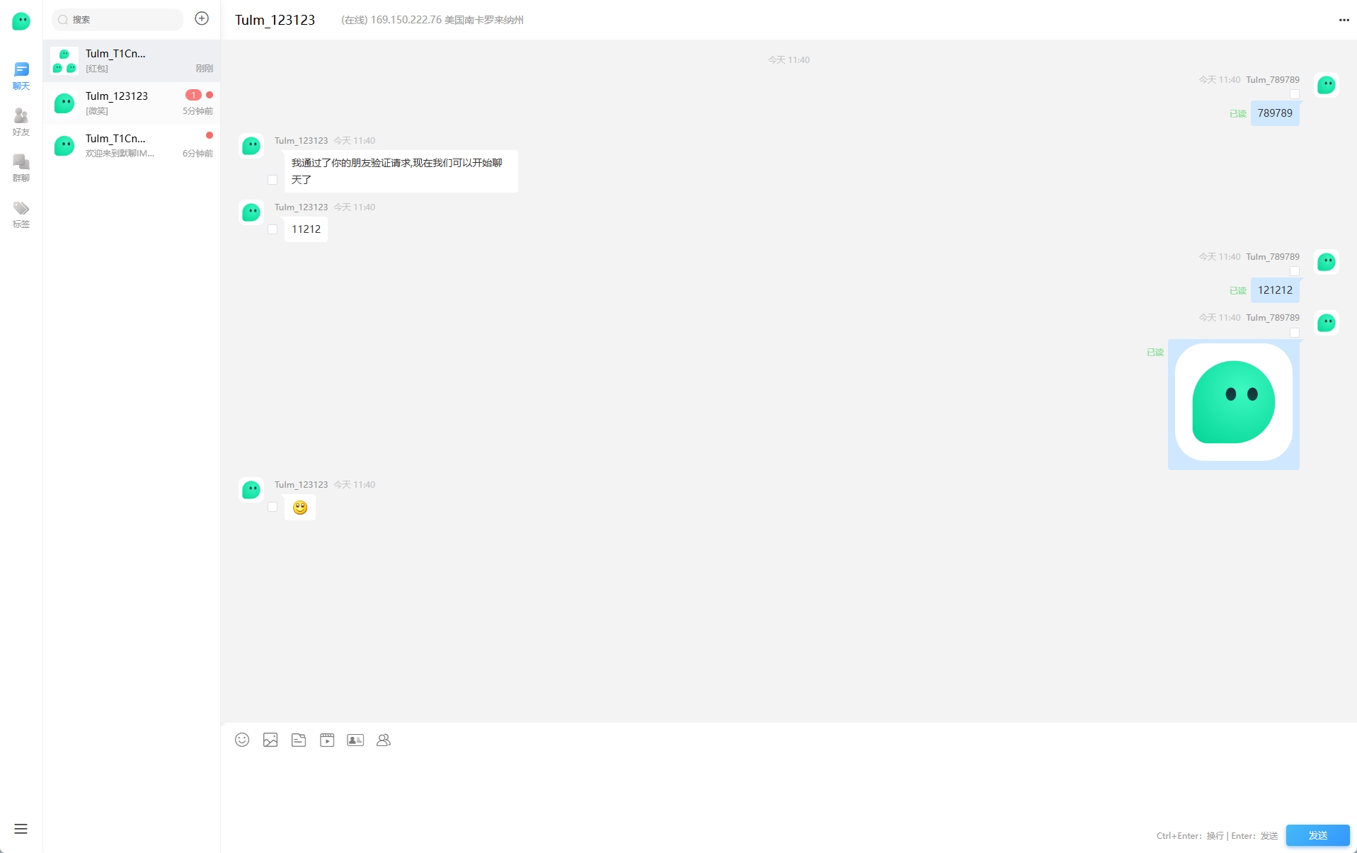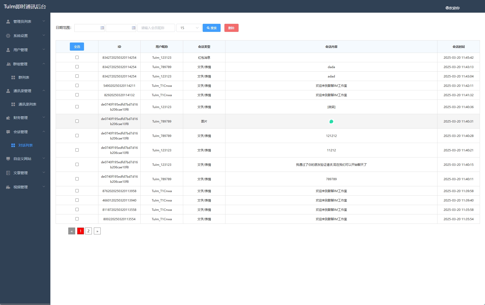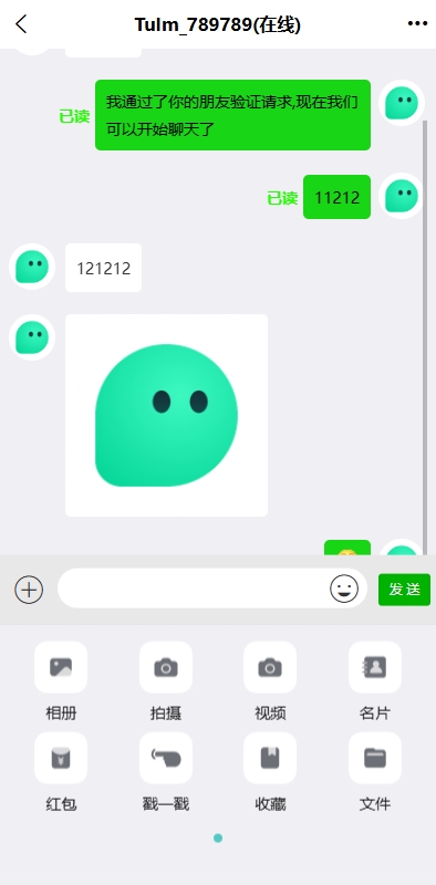 支持文字、表情、图片、语音、单聊、群聊、在线离线、撤回、已读未读、红包、消息群发、消息转发、内嵌外链、敏感词等完备的IM功能。