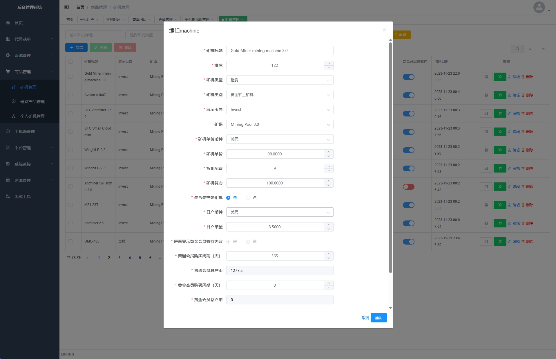海外矿机系统/平台币矿机/三级分销/JAVA开源