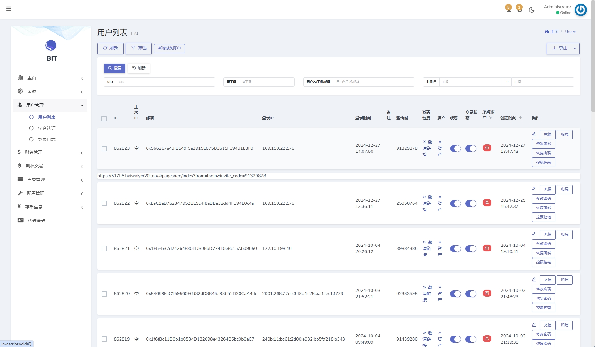admin 交易所 微盘理财 综合系统 DAPP币盘生息/日本币盘/存币生息/期权交易 定制版日本资金币盘系统,前端uniapp代理端laravel后端laravel框架全开源 主要功能: 前端DAPP登陆只能在钱包打开登录 存币生息(对用户钱包内资金发放利息 每日返利4次) 期权交易 根据秒数买涨买跌