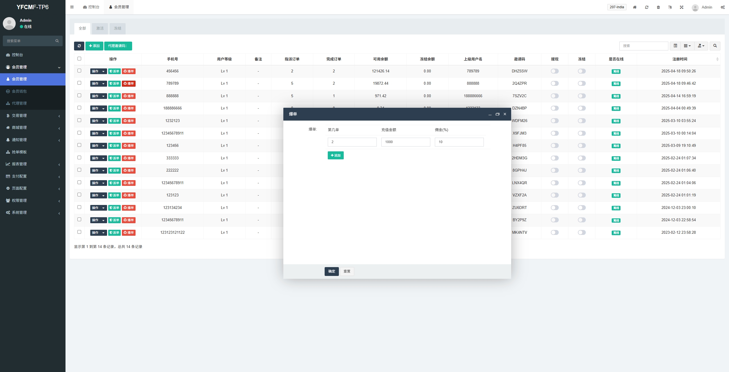 系统手动派单设置抢单数,手动设置爆单金额佣金