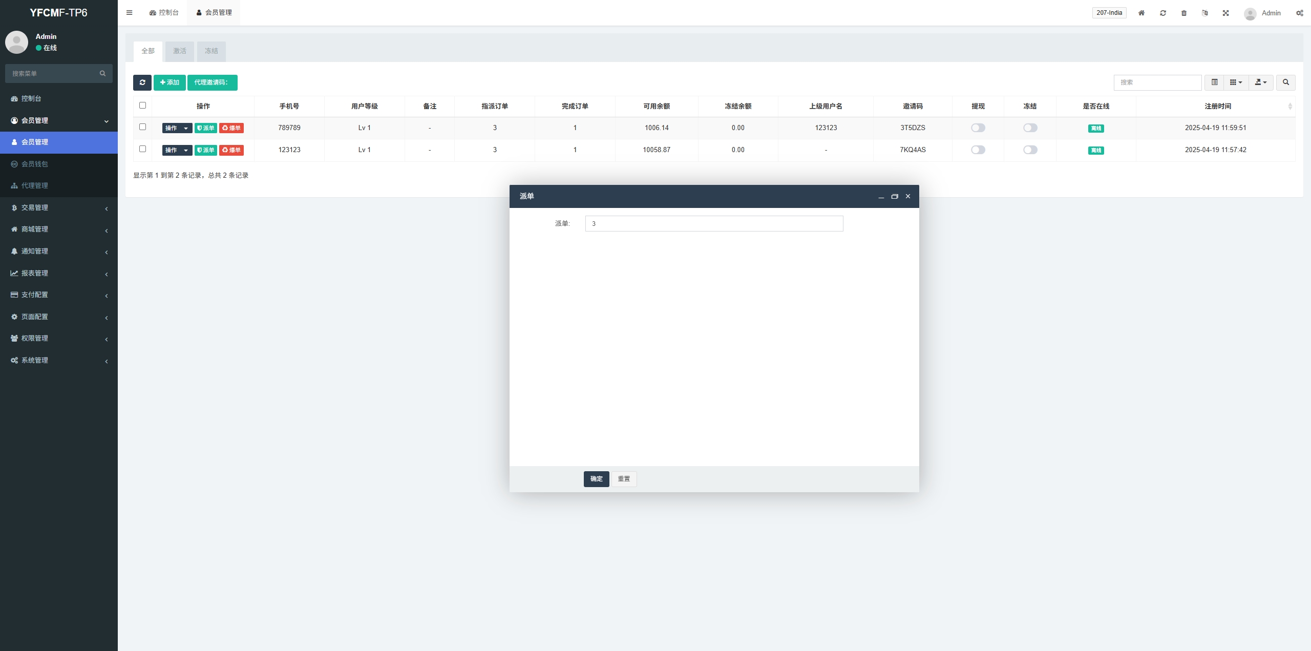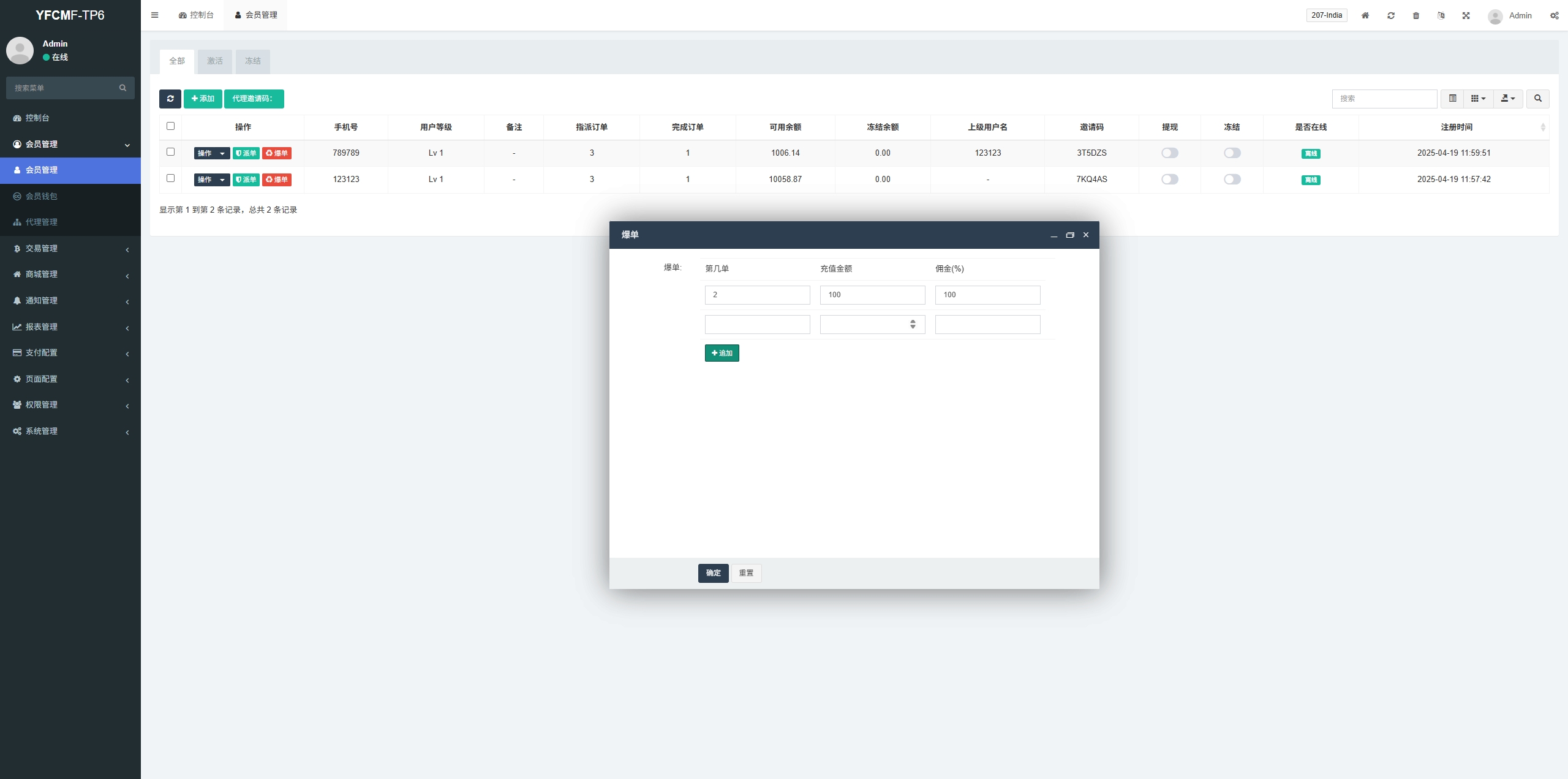 系统手动派单设置抢单数,手动设置爆单金额佣金,带签到功能