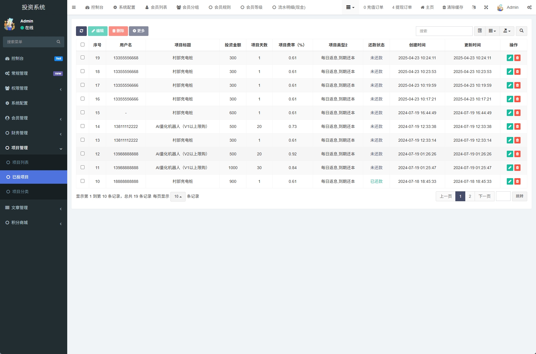 admin 微盘理财 综合系统 新版UI产品投资众筹返利系统/理财投资/前端uniapp 前端uniapp开发,后端FastAdmin框架全开源带前端 系统产品可任意更换,带三级分销签到等功能,支持付费二开多语言