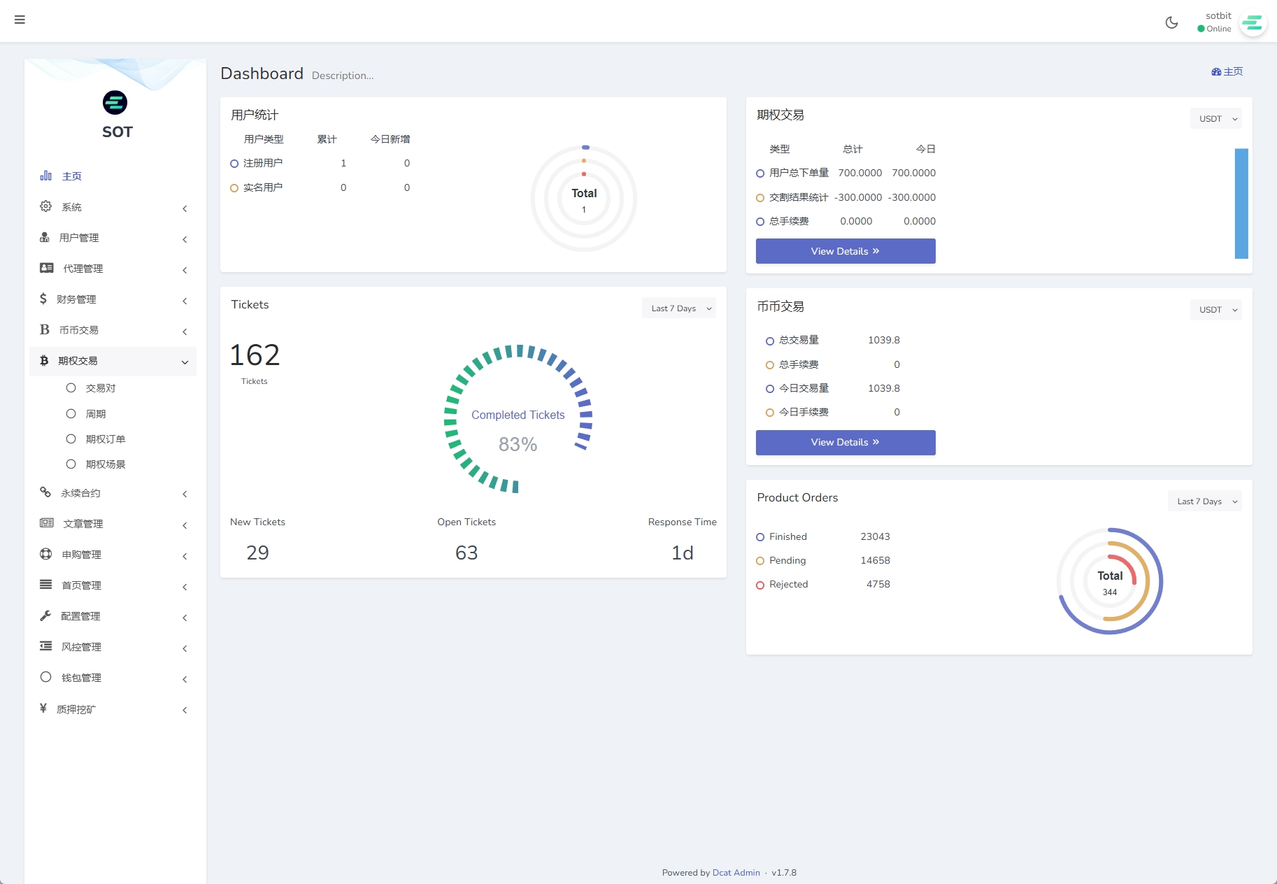 1、平台概况(实时行情、高端K线、BI数据分析、币种统计、用户统计、交易统计、异常用户)