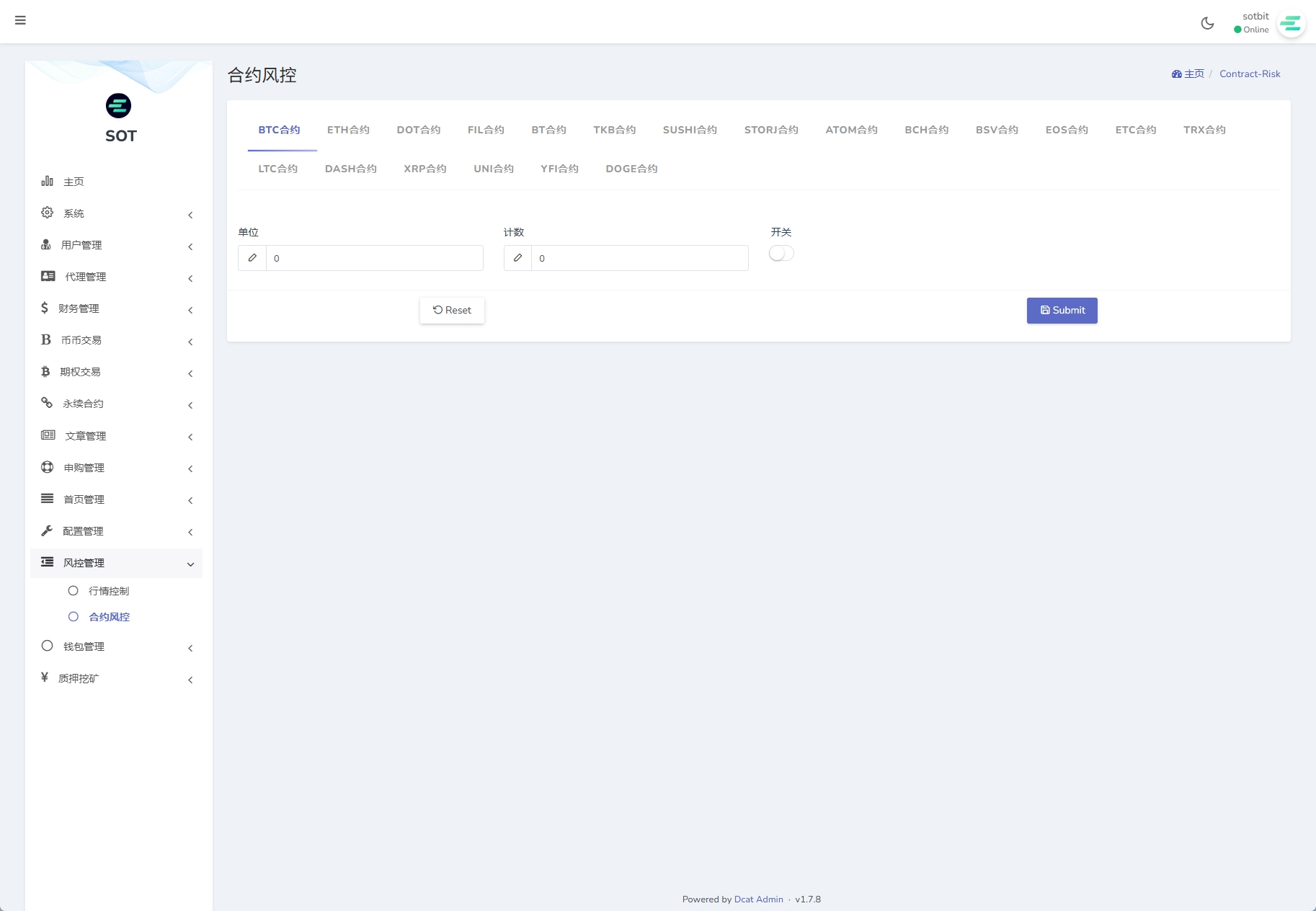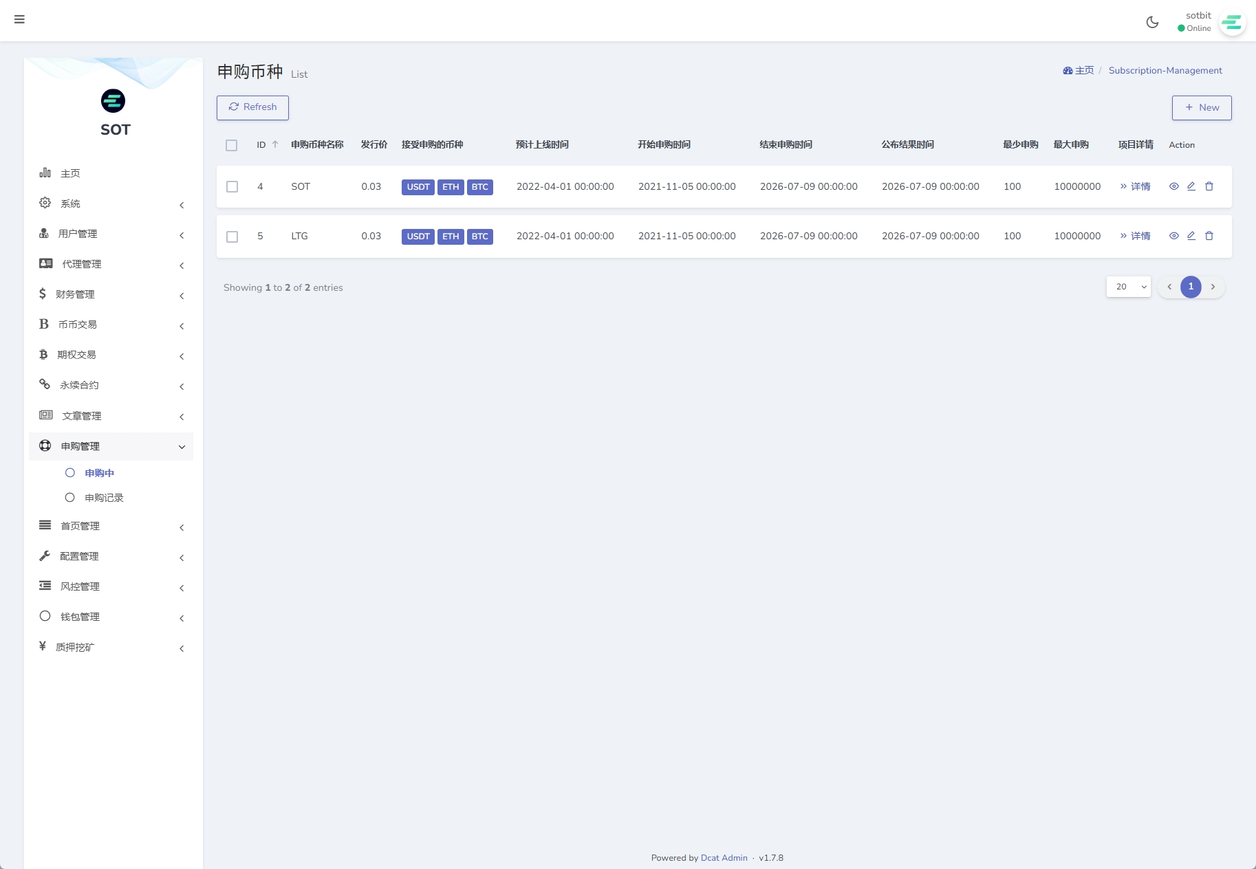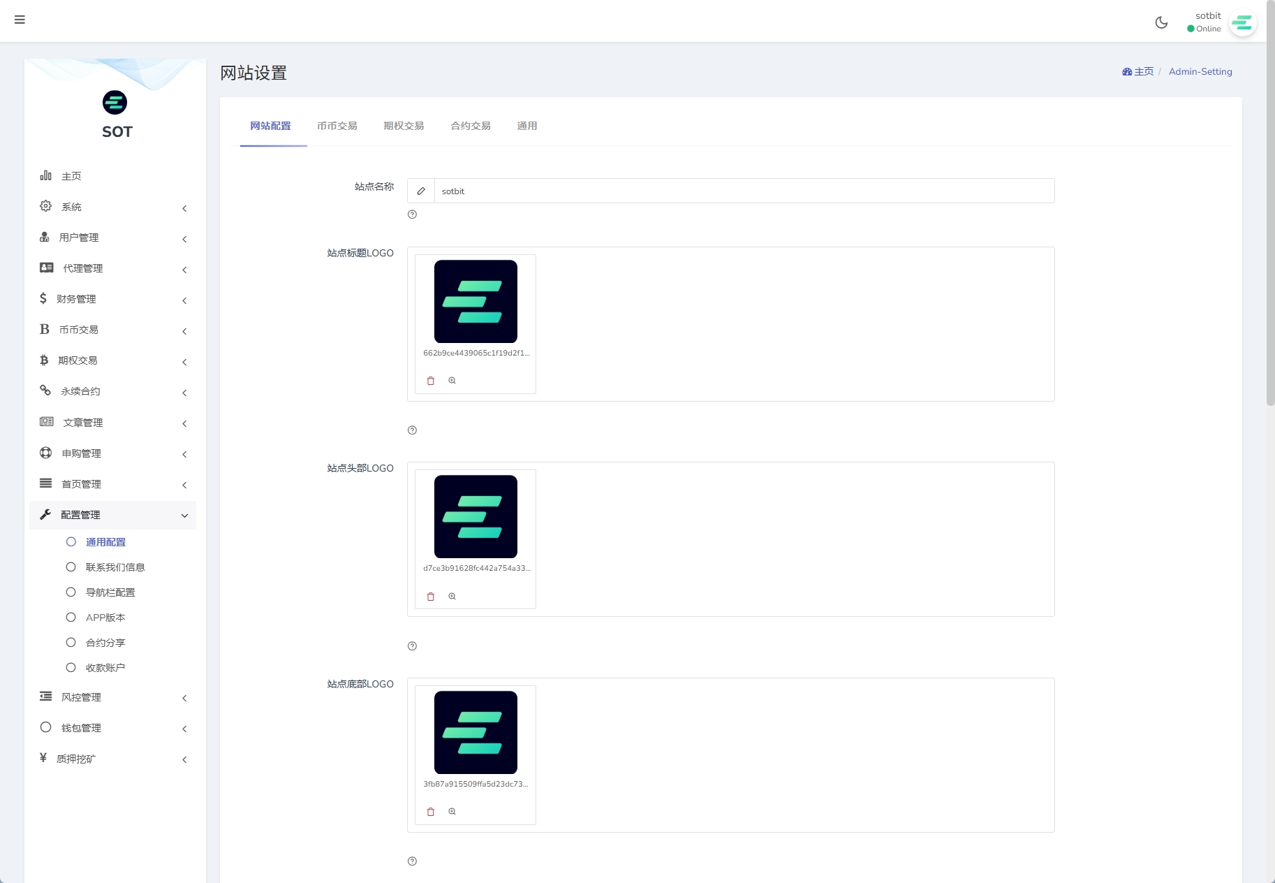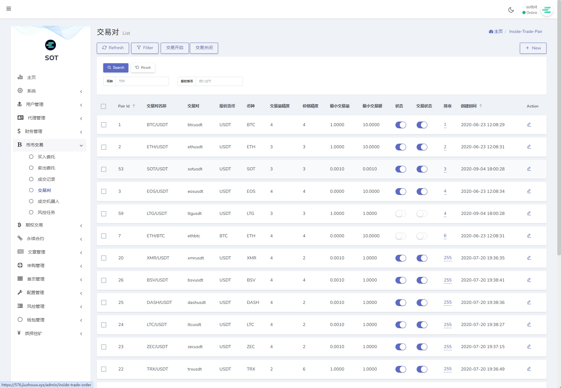 4、币种管理(币种的添加设置、提币账户管理、是否显示、交易对管理)