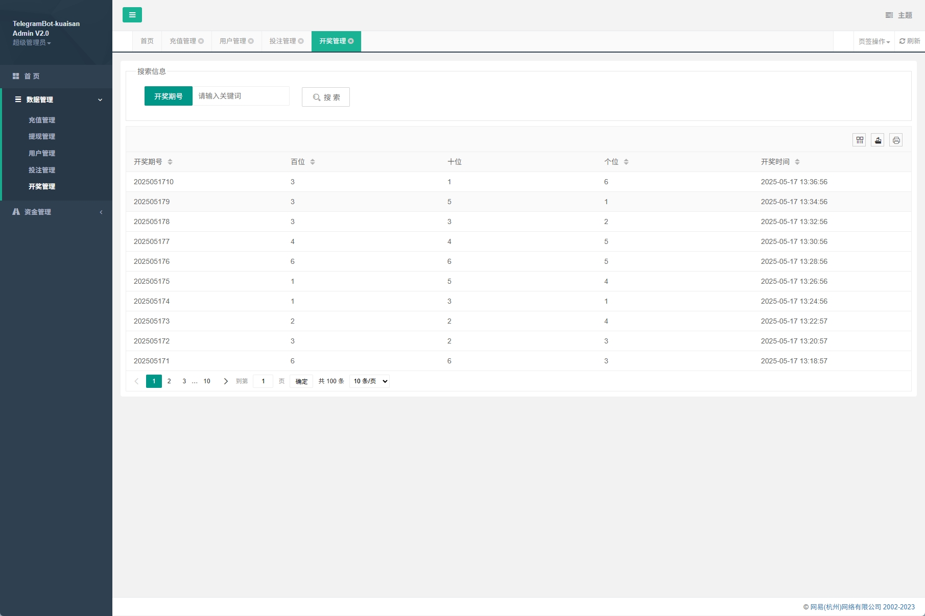 例:1豹子100、2豹子100